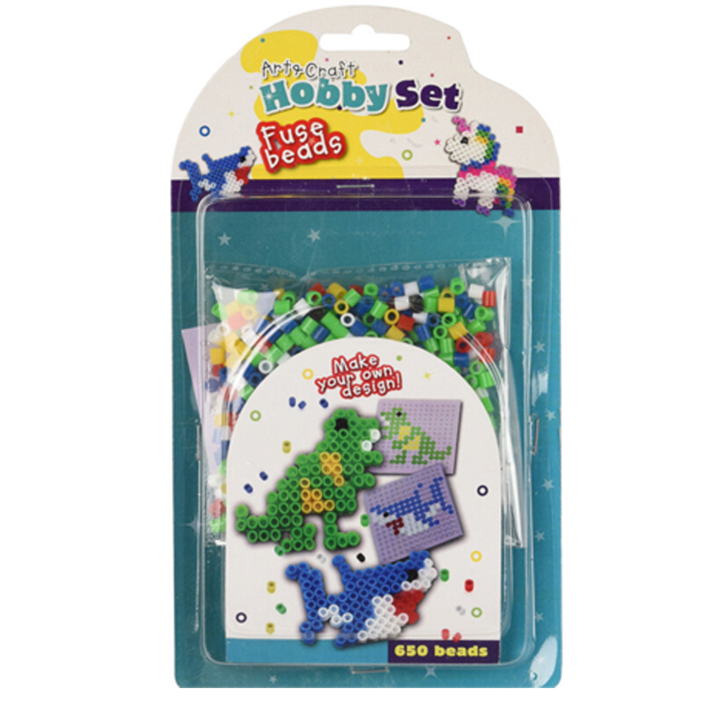 De strijkkralenset bestaat uit 650 verschillende kleuren strijkkralen en inclusief een strijkkralenbordje met een patroon.